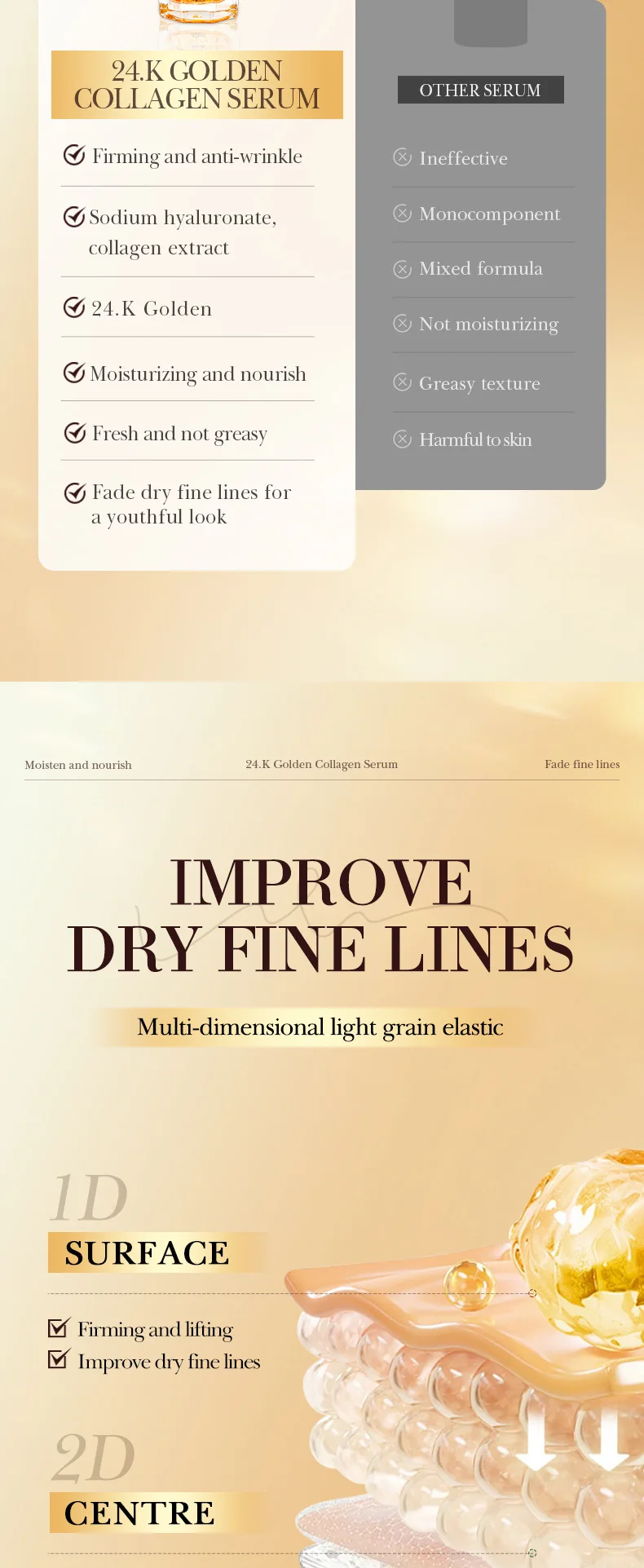 Le SADOER 24K Golden Collagen Serum est un sérum visage anti-âge conçu pour hydrater intensément, améliorer l’élasticité de la peau et atténuer visuellement les rides et ridules. Sa formule associe or 24 carats, collagène cosmétique et agents hydratants pour offrir un soin complet, adapté aux routines skincare quotidiennes.